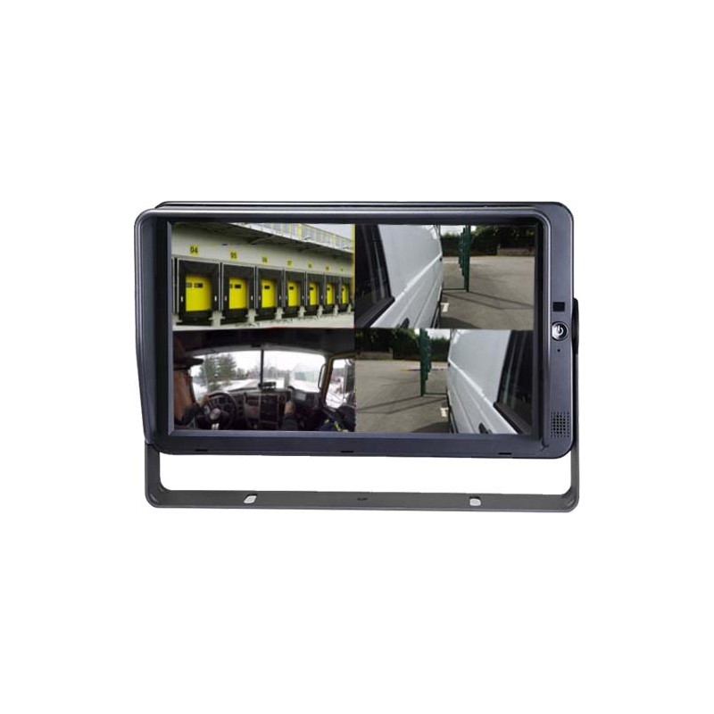 9" Vehicule Touch Screen Monitor 4 Camera Inputs and built-in DVR Display 1; 2; 3 or 4 simultaneous cameras. Automatic display according to vehicle direction. Virtual guiding lines on the screen. shocks and vibrations proof.