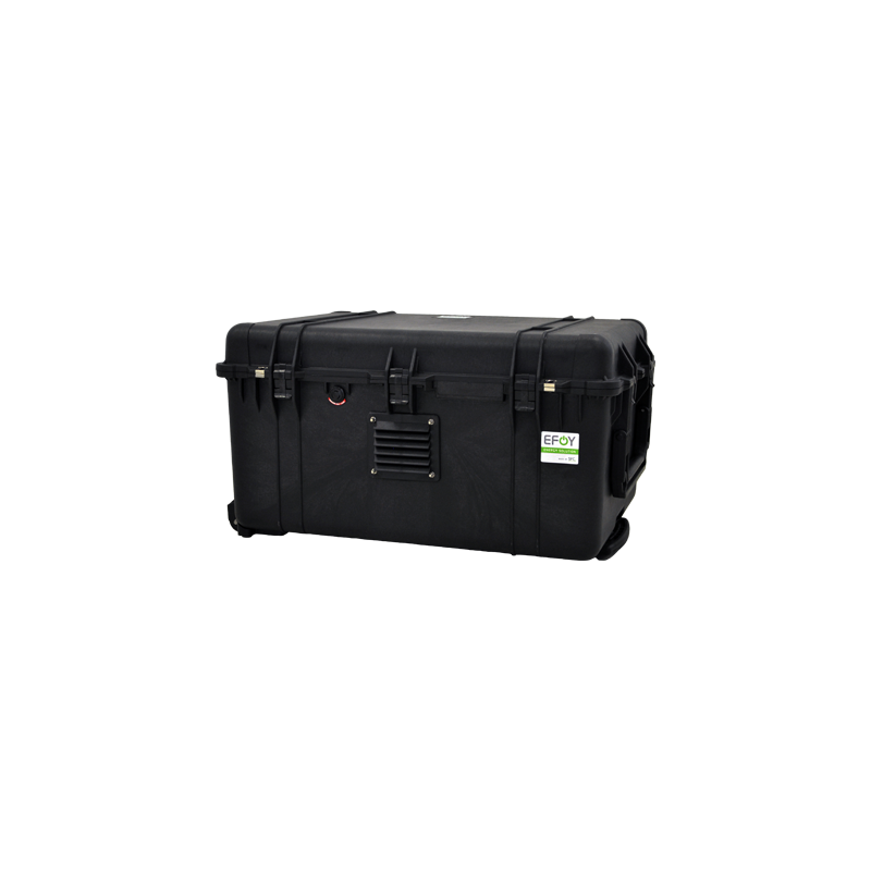ProEnergyCase is a complete, portable and maintenance-free solution for a wireless power supply. With a rugged housing and quick commissioning, the ProEnergyCase can be used anytime, anywhere. In this ProEnergyCase cabinet You can integrate an EFOY Pro fuel cell, up to two batteries and two M10 fuel cartridges. Thanks to the integrated solar charge controller, ProEnergyCase is ideal for hybrid operation with solar systems. It is the guarantee of a long autonomy without any intervention of the user. ProEnergyCase can be easily transported in a car. Commissioning and transport can be carried out by one person only. The wheels under the ProEnergyCase make it very mobile.