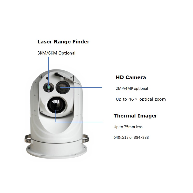 AL977LRF PTZ is eqipped with long range visible camera, high-performance thermal imaging camera and LRF (laser range finder). What's more, you can choose to add a compass function and use it with the LRF to accurately obtain the GPS location of the target object.