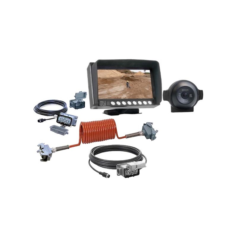 Kit vidéo complet camera de vision avant ORLACO 7" Conforme Classe VI selon directive 2003/97/CE-2005/27/CE si utilisé avec le support 0401270 optionnel. Le rétroviseur avant peut donc être supprimé.