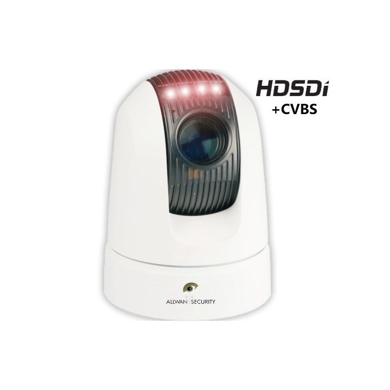 Motorized PTZ Dome Camera with HD-SDI and Composite BNC, with white or infrared LEDs to be specified at the time of your request. It can be installed either upright or upside down. This camera is specially designed for mobile video applications, mounted on vehicles, and industrial environments with vibrations.