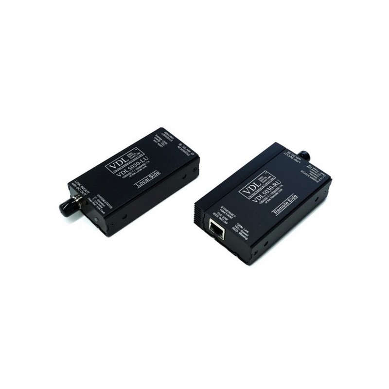 The VDL5030 is a long-range coaxial cable transmission pair that uses the coaxial cable as a medium to transmit digital network signals and power supplies. The VDL5030 is made up of two components, one placed at the end which we call the remote unit (RU), the other called the local unit (LU) connected to the host computer. RU and LU convert the signal from the coaxial cable into an Ethernet network signal on an RJ45 socket, the two ends of the socket have a speed of 100 Mbps, the specification is 10 / 100M Base-T. At the other end, the UK network sockets provide PoE power, which is IEEE 802.3at 30W, providing power to the end device up to 25.5 W via the CAT-6 network. The coaxial cable has excellent performance and can transmit digital signals up to 1000 meters (3280 feet) away, we recommend the use of the coaxial cable RG-6 / U, which is generally used in video surveillance and transmission video signals. The VDL5030 uses this coaxial cable to transmit digital signals with the same performance as the Ethernet cable of the CAT-6 type, but with more distance.