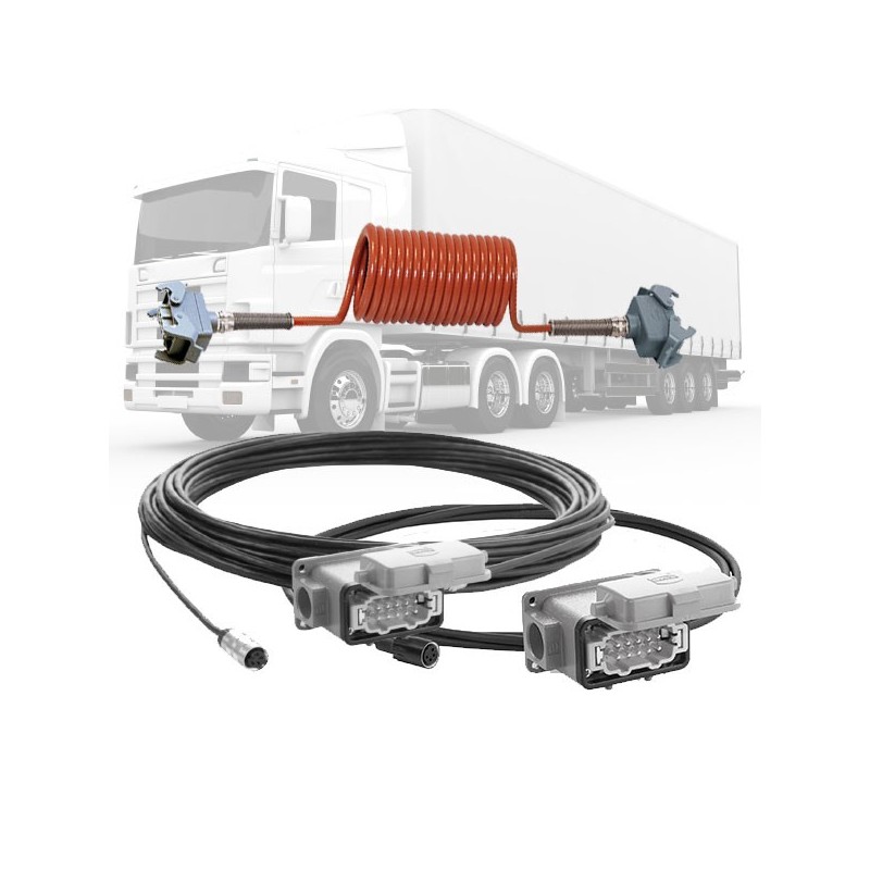 Kit de câbles caméra de recul porteur+semi Kit de raccordement caméra de recul conçu pour porteur équipé d'une remorque. Câble spiralé haute résistanceConnecteurs Harting qualité ferroviaireUtilisable avec les caméras, moniteurs et kits vidéo de recul Orlaco comme le RC2120 ou RC2100Contactez-nous par mail ou au 02 41 35 01 25