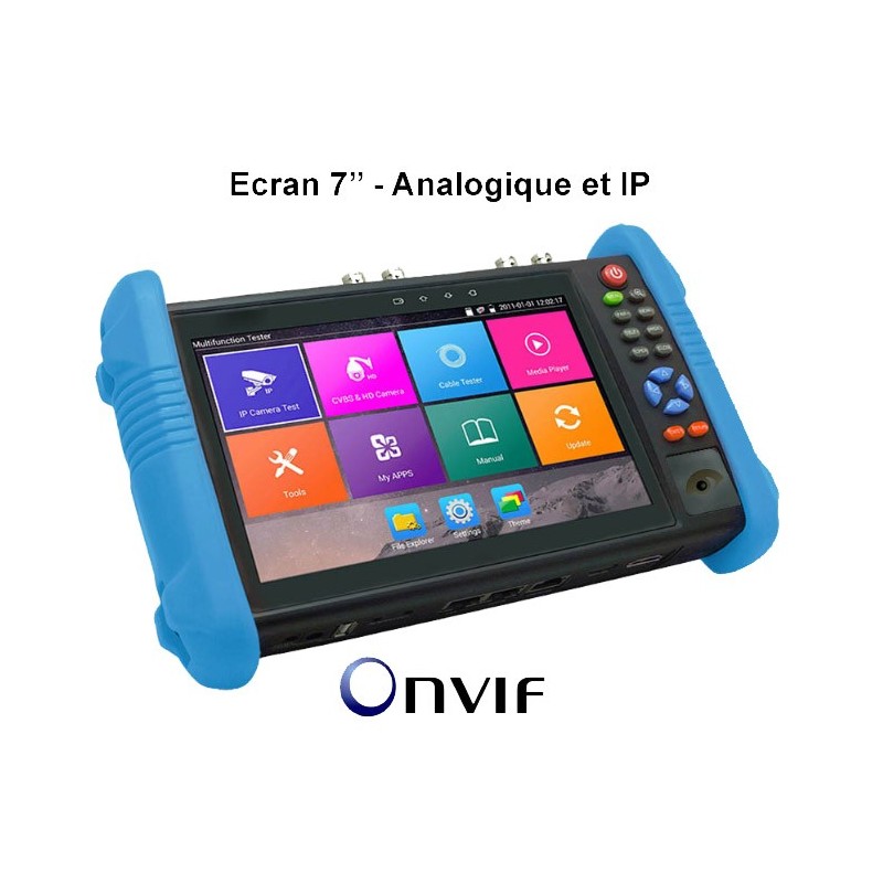 Moniteur de contrôle vidéo pour caméras IP OnVif et analogiques. Réglage polyvalent pour les techniciens. Ecran large 7" très lumineux. Permet un affichage confortable détaillé même en extérieur, facilite le réglage du focus de vos caméras. Existe avec multimètre intégré et entrées TVI, CVI, AHD.